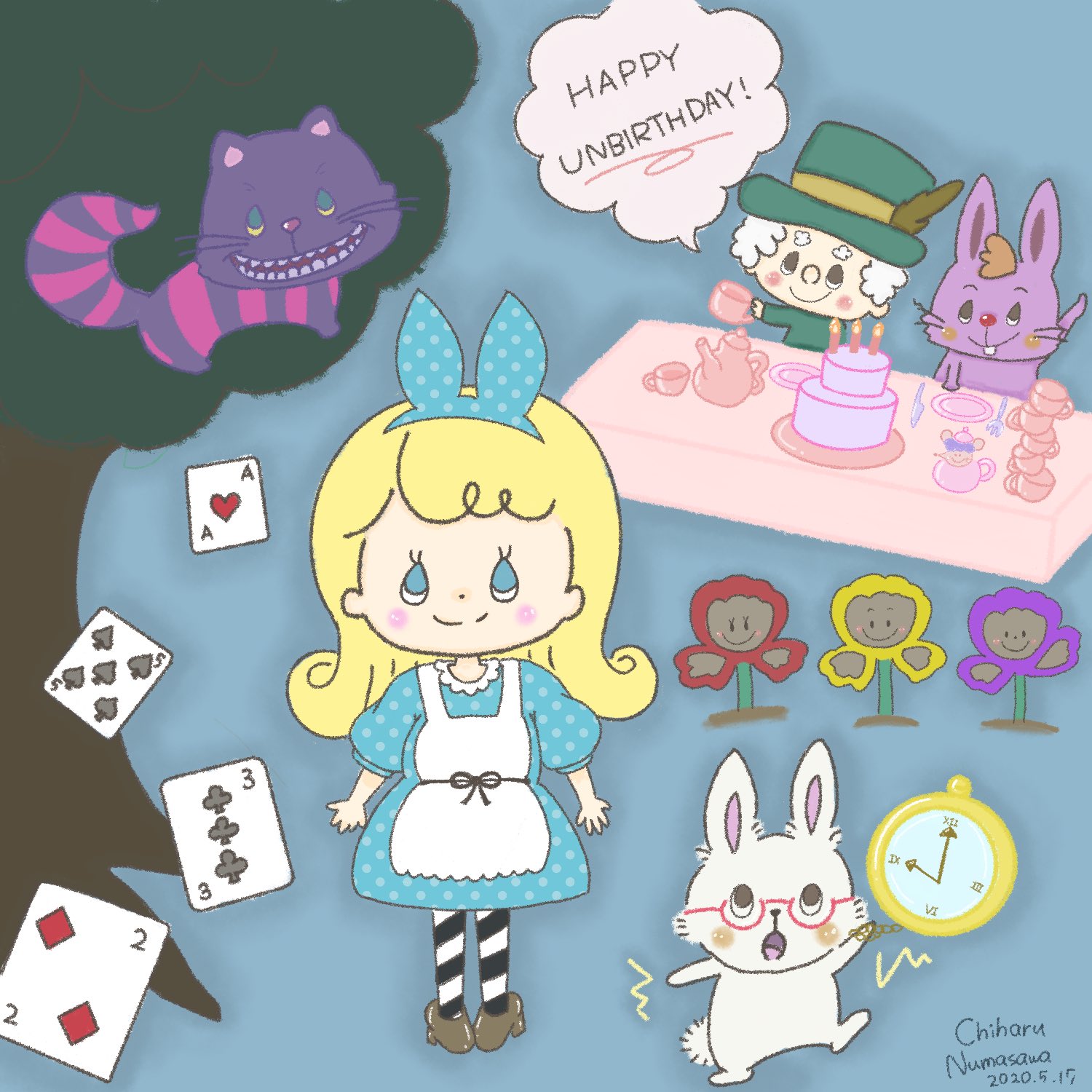 ぬまさわちはる イラストレーター 不思議の国のアリス風女の子 ゚v゚ イラストレーター Illustrator イラスト 可愛いイラスト 動物イラスト Illustrations Illustration イラスト ゆるかわ うさぎ Rabbit 不思議の国のアリス アリス お花